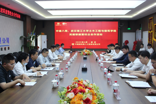 In order to thoroughly implement the general requirements for party building in the new era and promote the in-depth integration of industry, education and research under the leadership of party building, on April 17, the School of Civil Engineering and Architecture and the Central South Branch of China Construction Eighth Engineering Bureau jointly carried out joint party building and school-enterprise cooperation activities in the Wuhan Sanzhen Central Project. Chen Wei, Vice Dean, Wan Linbo, Vice Dean, Shang Yijun, Deputy Secretary of the Party Committee, Zhou Junli, Secretary of the Party Branch of the Department of Building Environment and Energy Application Engineering, Wang Jinyuan, Deputy Secretary of the Party Branch of the Department of Geotechnical Engineering and other teacher representatives, Song Jiangzeng, Specialist of the Central South Branch of China Construction Eighth Engineering Bureau; relevant persons in charge of the Human Resources Department of China Construction Eighth Engineering Bureau Fourth Company, the Central South Company, and project managers in Wuhan area, totaling more than 20 people, attended the meeting.